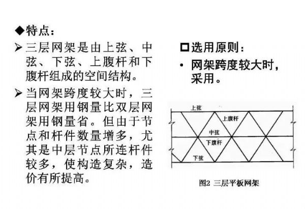 本文主要講述了網(wǎng)架結(jié)構(gòu)的形式、設(shè)計選型、支承體系以及網(wǎng)架的找坡方法,并進行了常用網(wǎng)架設(shè)計軟件的比較,對空間鋼結(jié)構(gòu)尤其是網(wǎng)架網(wǎng)殼結(jié)構(gòu)感興趣的朋友不妨一讀。